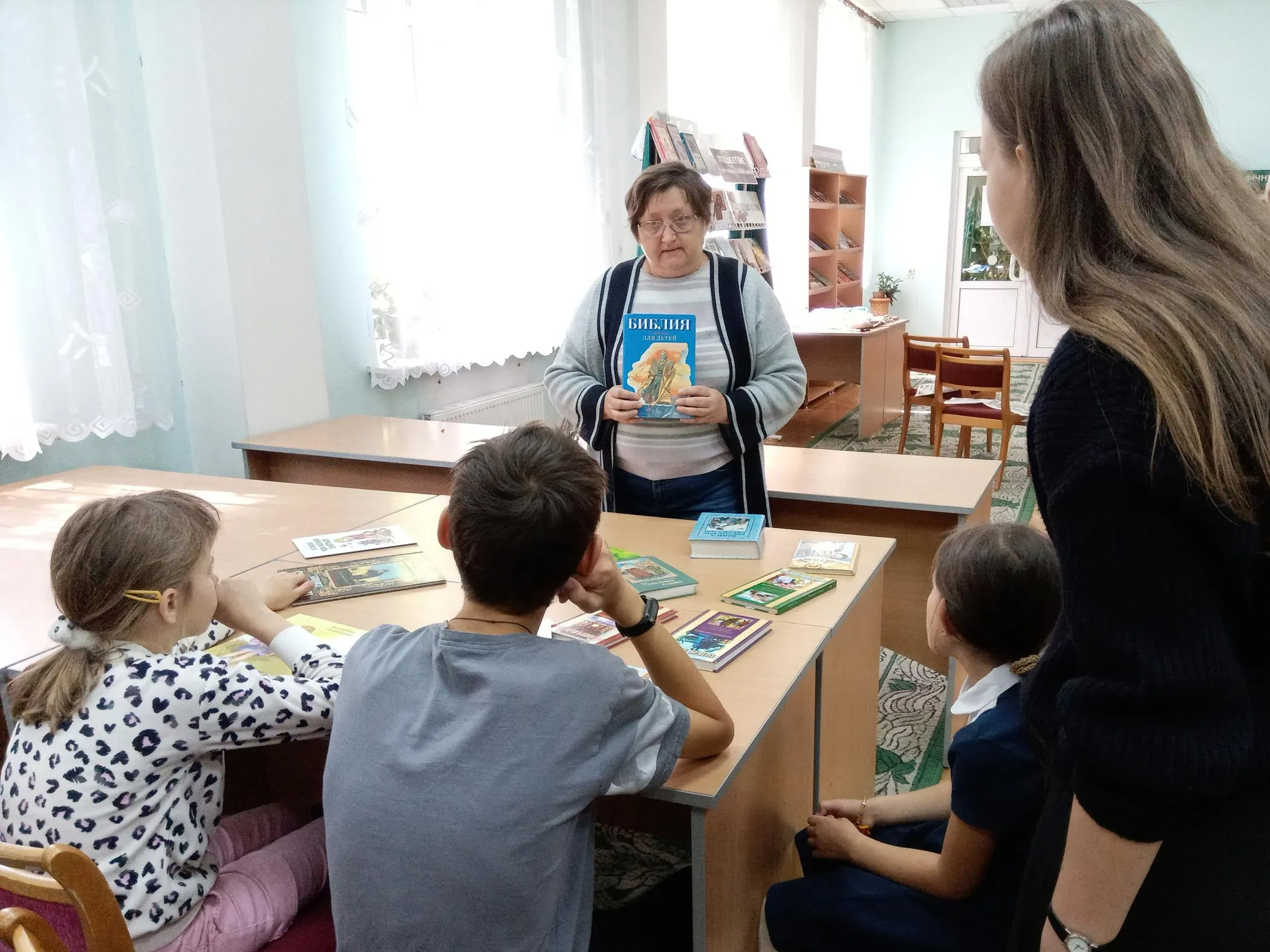 Заведующая библиотекой Елена Аркадьевна Игнатьева живо и интересно рассказала о детской православной литературе, имеющейся в фондах библиотеки. Здесь были книги Библии в изложении для детей; жития святых; книги, обучающие основам православного вероучения. Должное внимание уделено и художественной литературе, затрагивающей вопросы православной морали, в том числе – произведениям классиков.