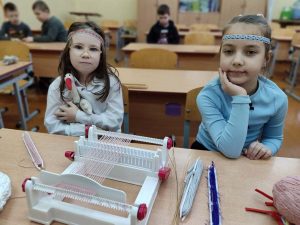 Пад кіраўніцтвам дарослых дзеці з задавальненнем працавалі на маленькім ткацкім станку. Гэты працэс патрабуе ўседлівасці і ўвагі, дазваляе школьнікам зразумець, наколькі складанай, але ў той жа час, творчай была праца нашых продкаў.