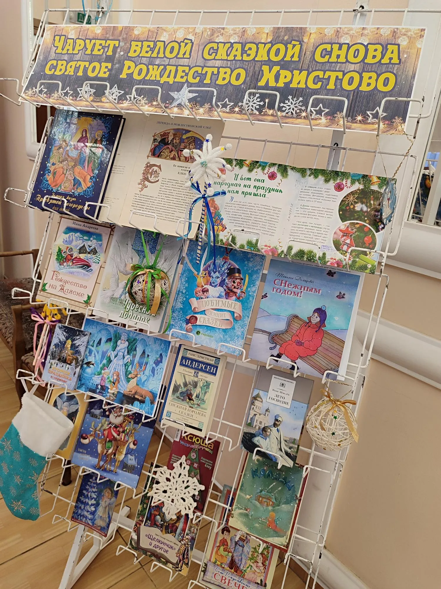 Ирина Алексеевна Самарец, библиотекарь отдела маркетинга и социокультурной деятельности Центральной городской библиотеки им. А.С.Пушкина, рассказала ребятам об истории праздника Рождества Христова, познакомила с литературой, представленной на выставке «Чарует белой сказкой снова святое Рождество Христово».