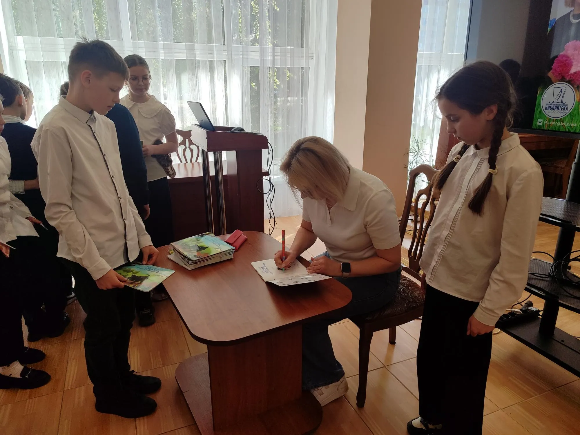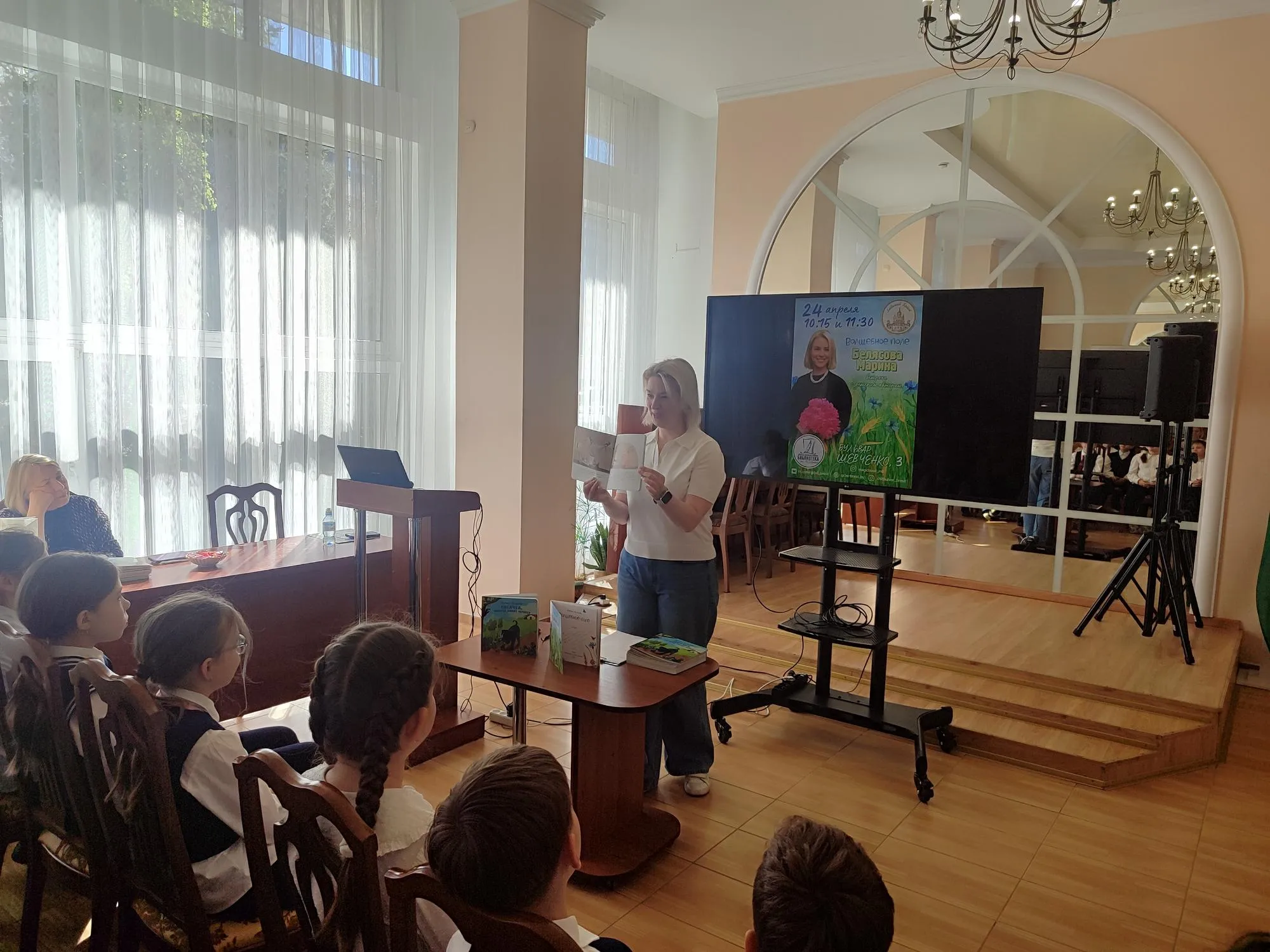 24 апреля в центральной городской библиотеке имени А.С.Пушкина в рамках акции «Библионочь» состоялись встречи с детской писательницей Мариной Белясовой. Гостями мероприятий стали постоянные участники проекта «Дружим с книгой» – учащиеся ГУО «Средняя школа № 15 г. Бреста».