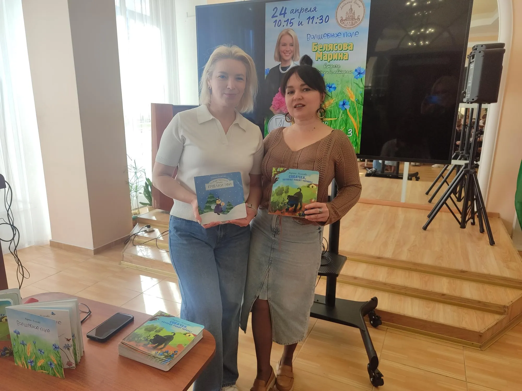 Сказки Марины Белясовой – «Рождественская мечта пчелки Эви», «Волшебное поле», «Собачка, которая любят чернику» – учат детей верить в свою мечту, ценить не только внешнюю красоту, но и внутреннюю, совершать добрые поступки. Ребята с интересом слушали о приключениях сказочных героев, разгадывали загадки, собирали из букв слова «друзья» и «дружба». В конце беседы все желающие смогли приобрести книги с автографом автора и сделать фото на память.