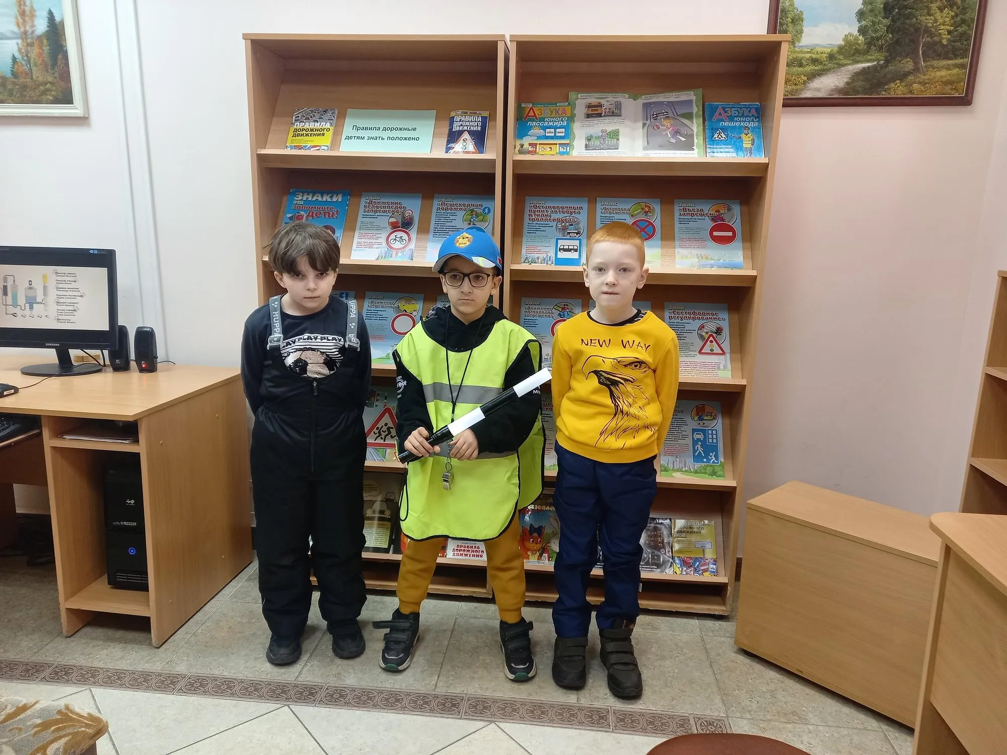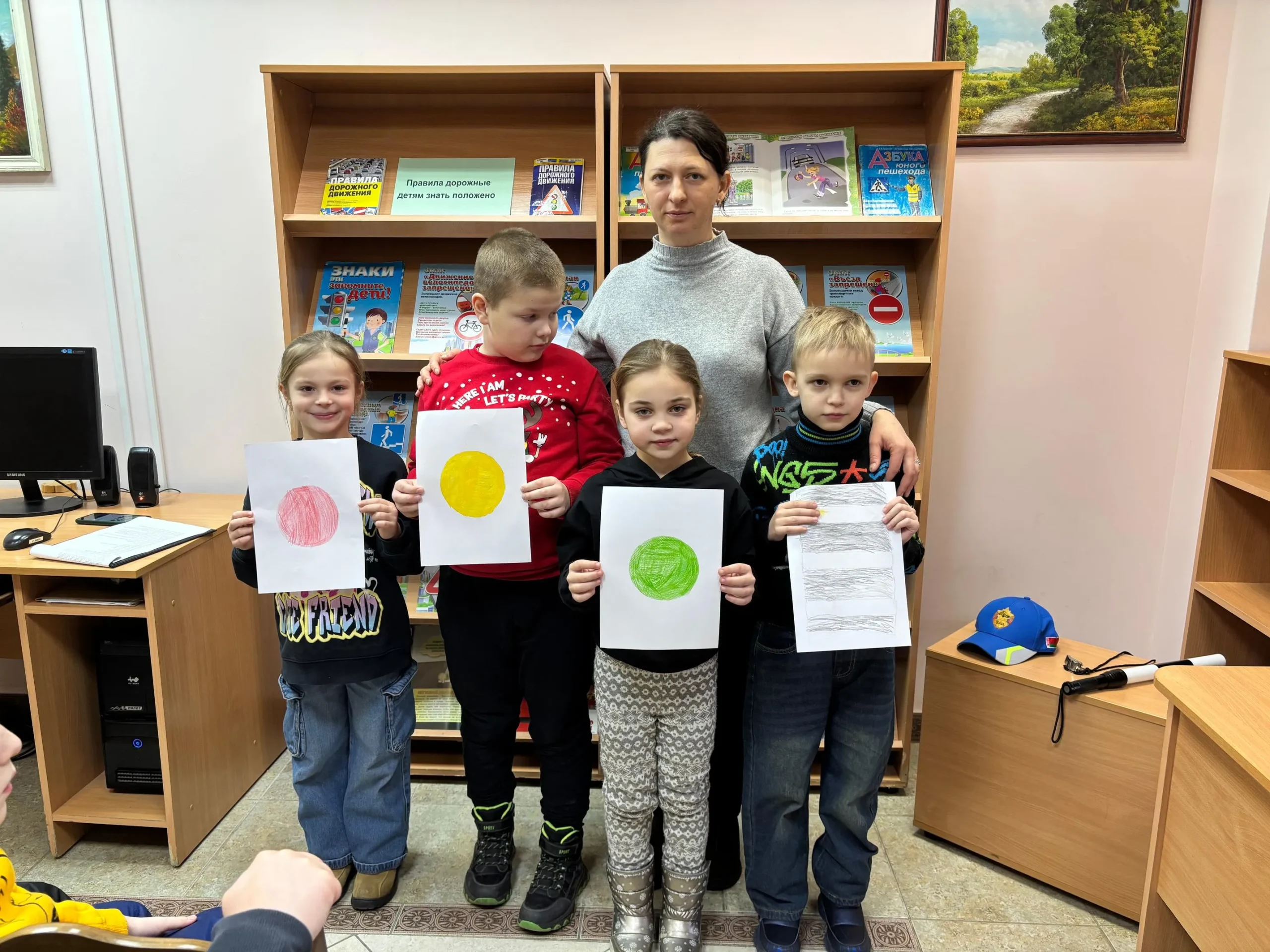 Завершилось мероприятие знакомством с книгами о ПДД и просмотром мультфильма «Три кота и дорога».