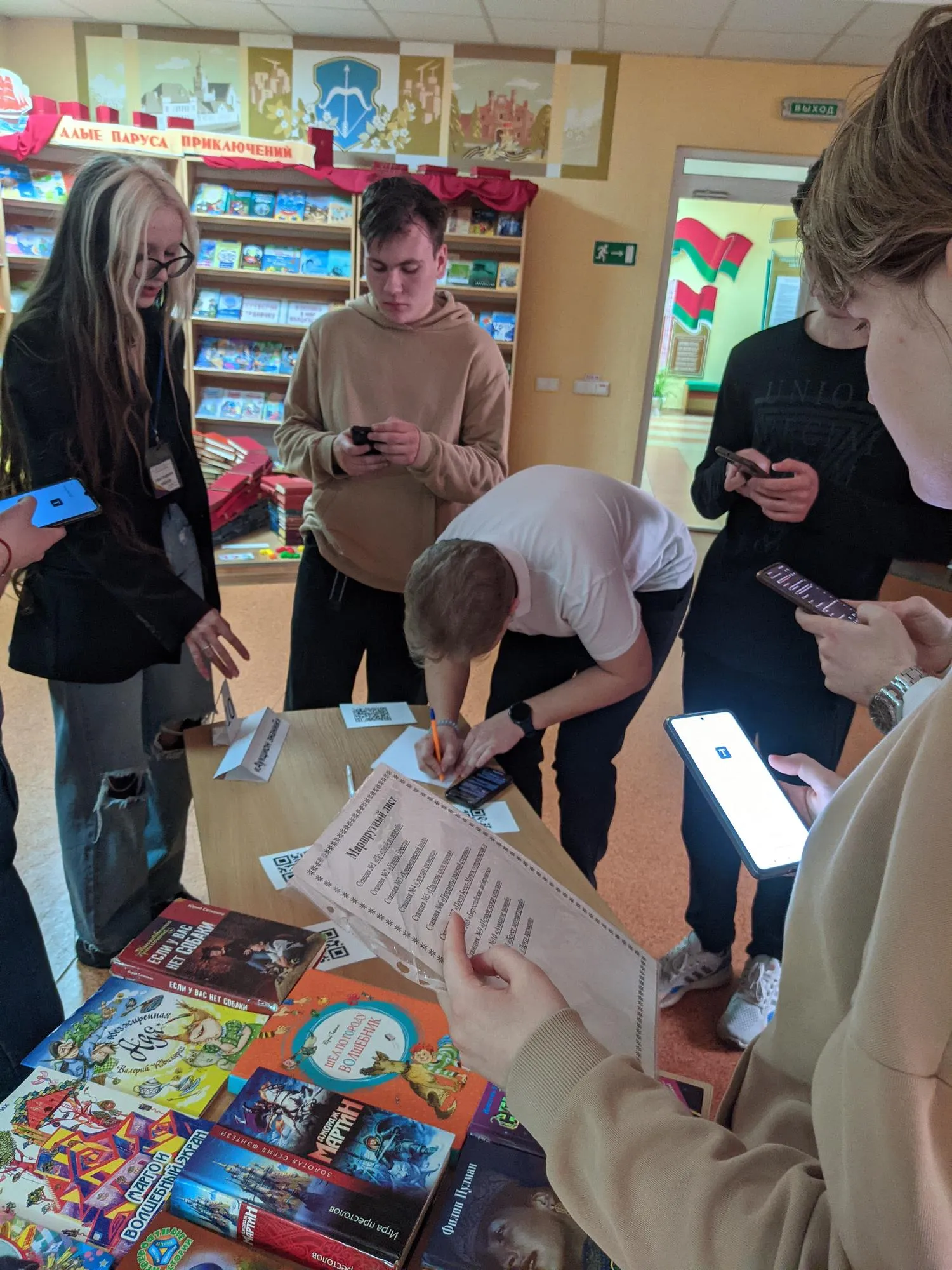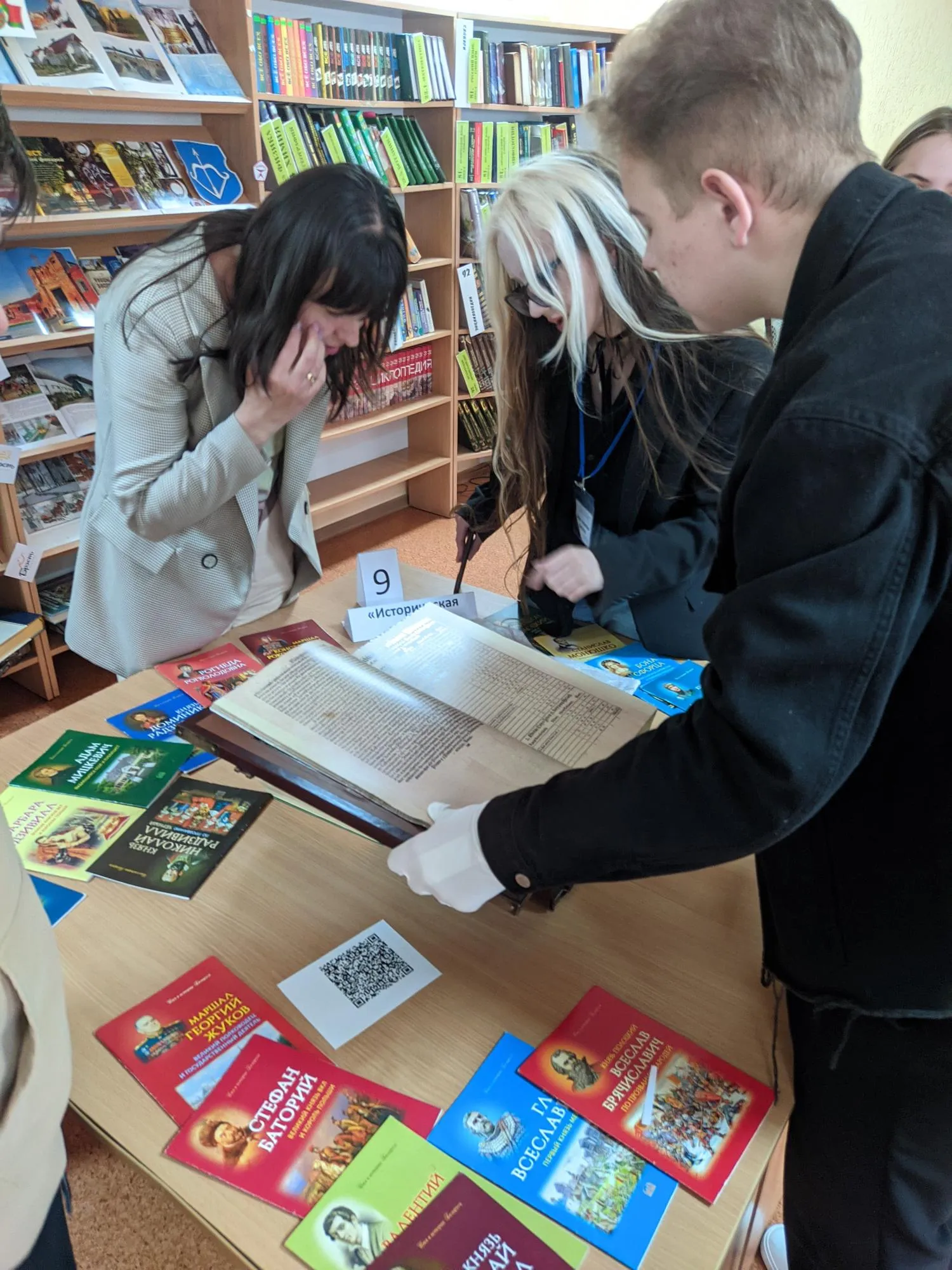 Испытаний было много. Это и лента времени, и геральдика белорусских городов, и литературное наследие Брестчины. А также история и архитектура Бреста, краеведческий пазл. Ещё ребята познакомились с уникальным изданием, к которому можно прикасаться, только надев перчатки.