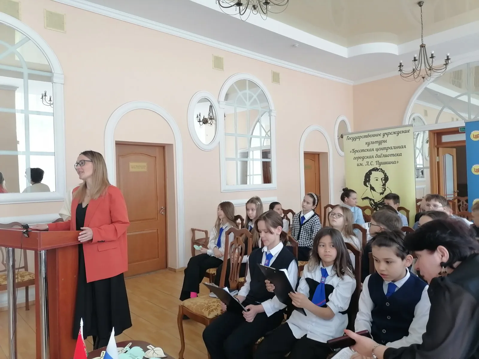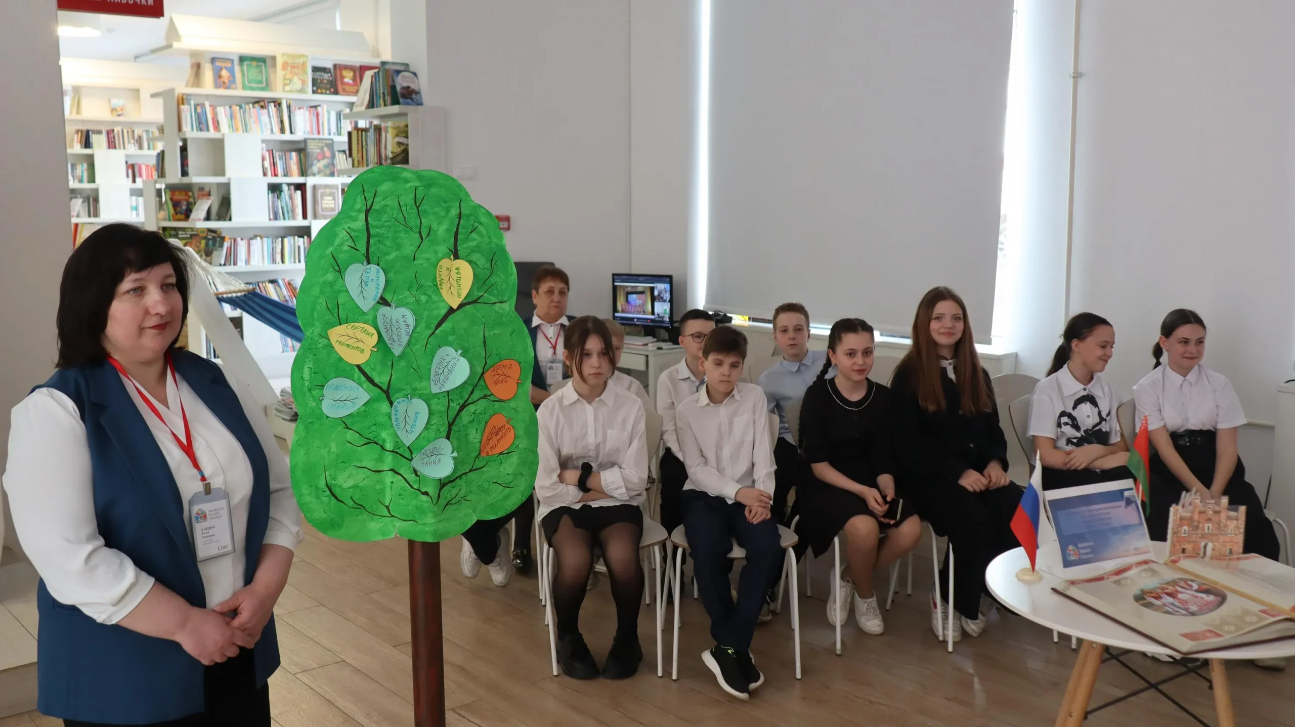 С приветственным словом к участникам обратилась директор ГУК «Брестская Центральная городская библиотека им. А.С. Пушкина», которая поздравила всех с праздником и подчеркнула важность таких встреч для укрепления связей между народами, особенно для подрастающего поколения. Также поприветствовала собравшихся по обе стороны экрана Глусская Ирина Михайловна, президент Самарской областной общественной организации белорусов и выходцев из Беларуси «Русско-Белорусское Братство 2000».