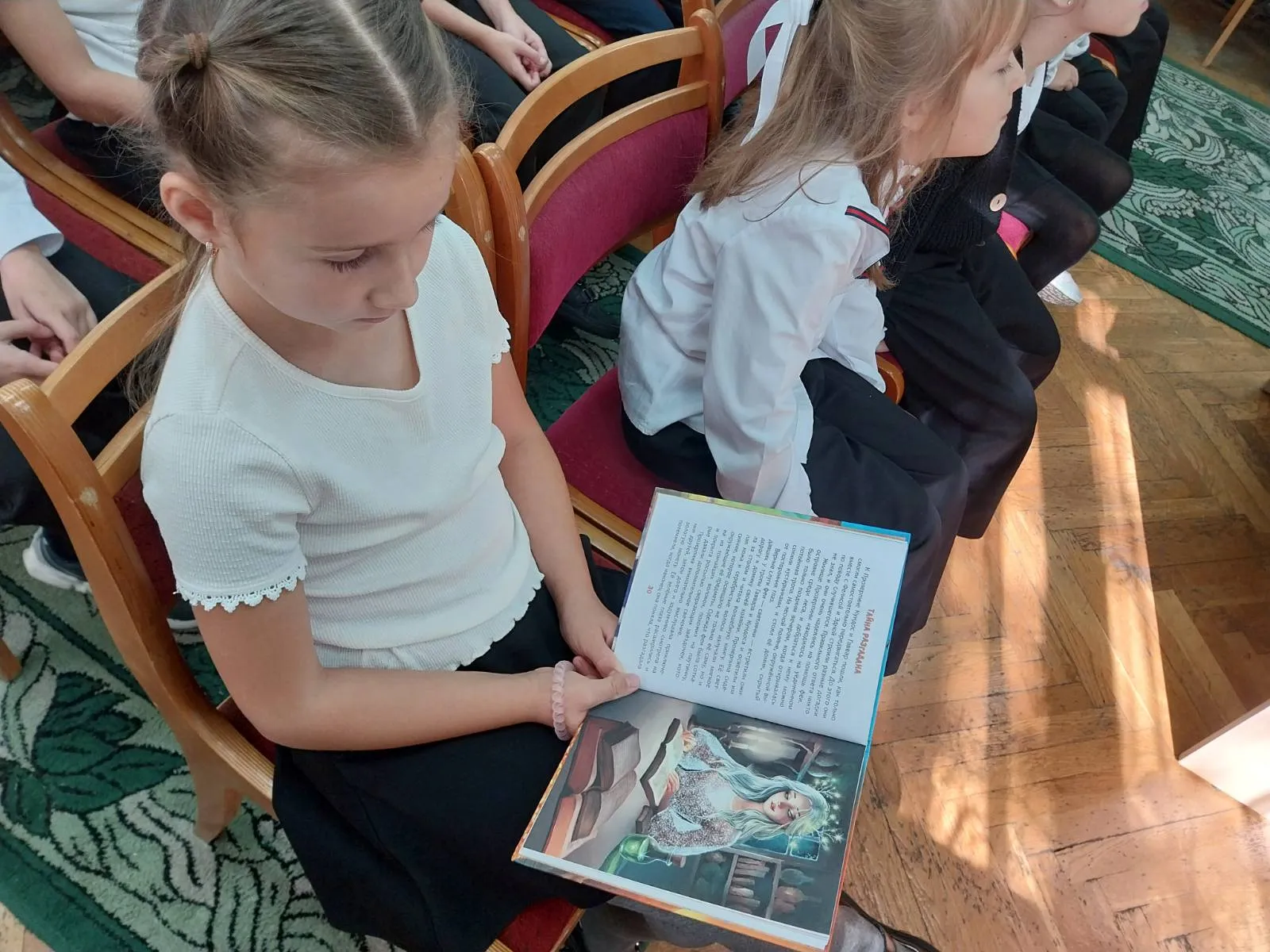 Автор рассказала мальчишкам и девчонкам историю о том, как она стала писать для детей. Познакомила юных читателей со своими книгами «Необыкновенные приключения Гаввара и Кундоса. Голубой кристалл» и «Необыкновенные приключения Гаввара и Кундоса. Золотые монеты». Особый интерес у ребят вызвало обсуждение главных героев книг – Гаввара и Кундоса.