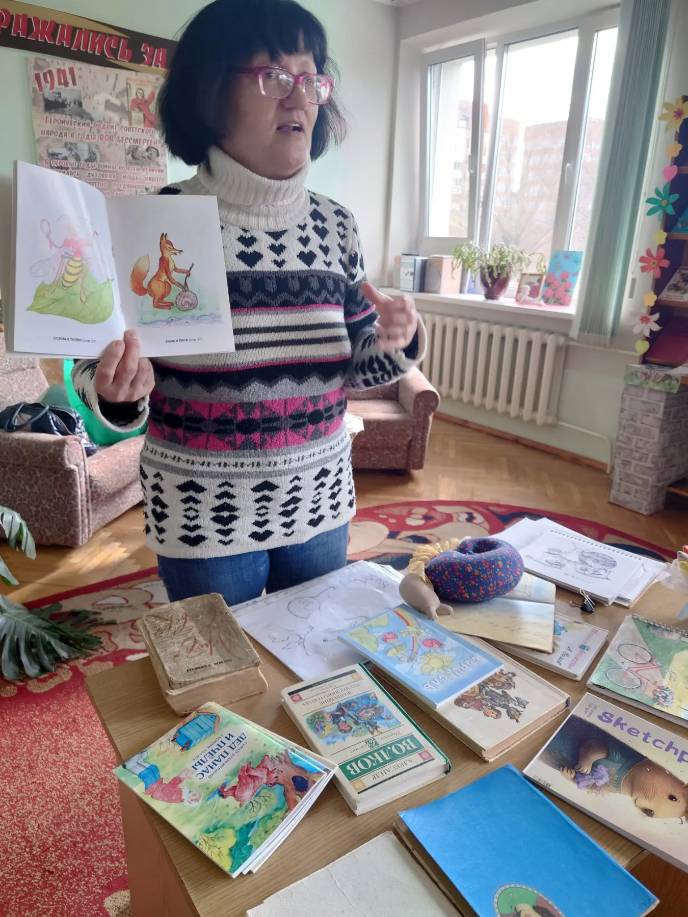Ребята узнали, что писательница иллюстрировала сборники сказок и загадок Сергея Дубновицкого «Дед Панас и пчелы» и «Любознательному другу», обложку сборника для маленьких читателей «Карусель».