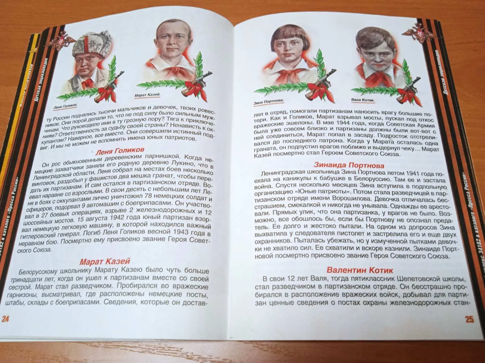 Ребята узнали о пионерах-героях, о подвигах мальчишек и девчонок, бесстрашно и гордо шагнувших в зарево войны, о борьбе юных антифашистов против захватчиков в годы Великой Отечественной войны. Школьники узнали имена тех, чей подвиг навеки останется в памяти поколений – Лени Голикова, Зины Портновой, Марата Казея, Зои Смирновой и многих других. Библиотекарь рассказала, как быстро приходилось взрослеть детям в военные годы, сколько взрослых обязанностей ложилось на их неокрепшие плечи.