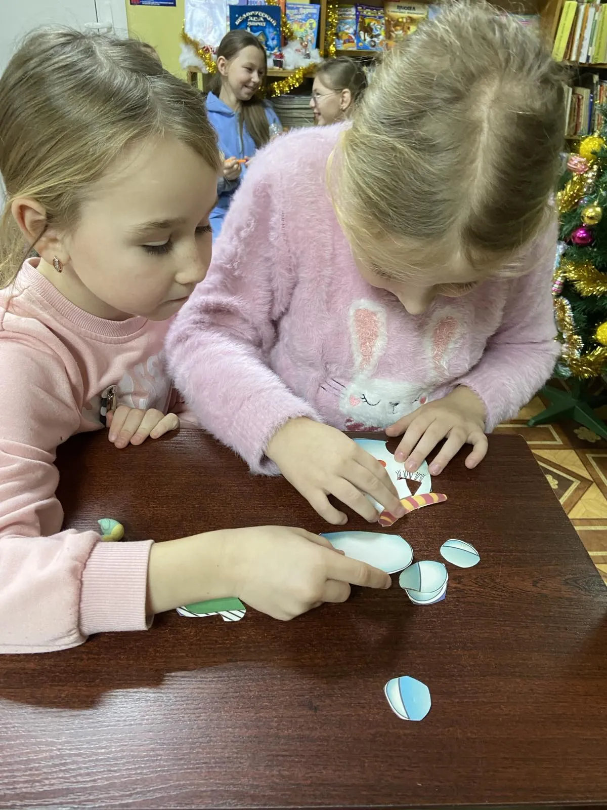 Ребята познакомились с историей торжества, с многообразием новогодних традиций и обычаев празднования в разных странах. Мальчишки и девчонки выполняли интересные задания: разгадывали зимний кроссворд «Снеговик», читали стихи, участвовали в конкурсе «Лучшая снежинка», «Необычный снеговик». Активничали в новогодних играх и викторинах.