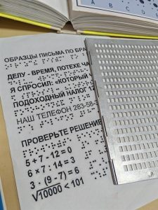 Библиотекари познакомили ребят со спецификой работы специальной библиотеки и книгами, напечатанными рельефно-точечным шрифтом. Рассказали историю создания шрифта Брайля.
