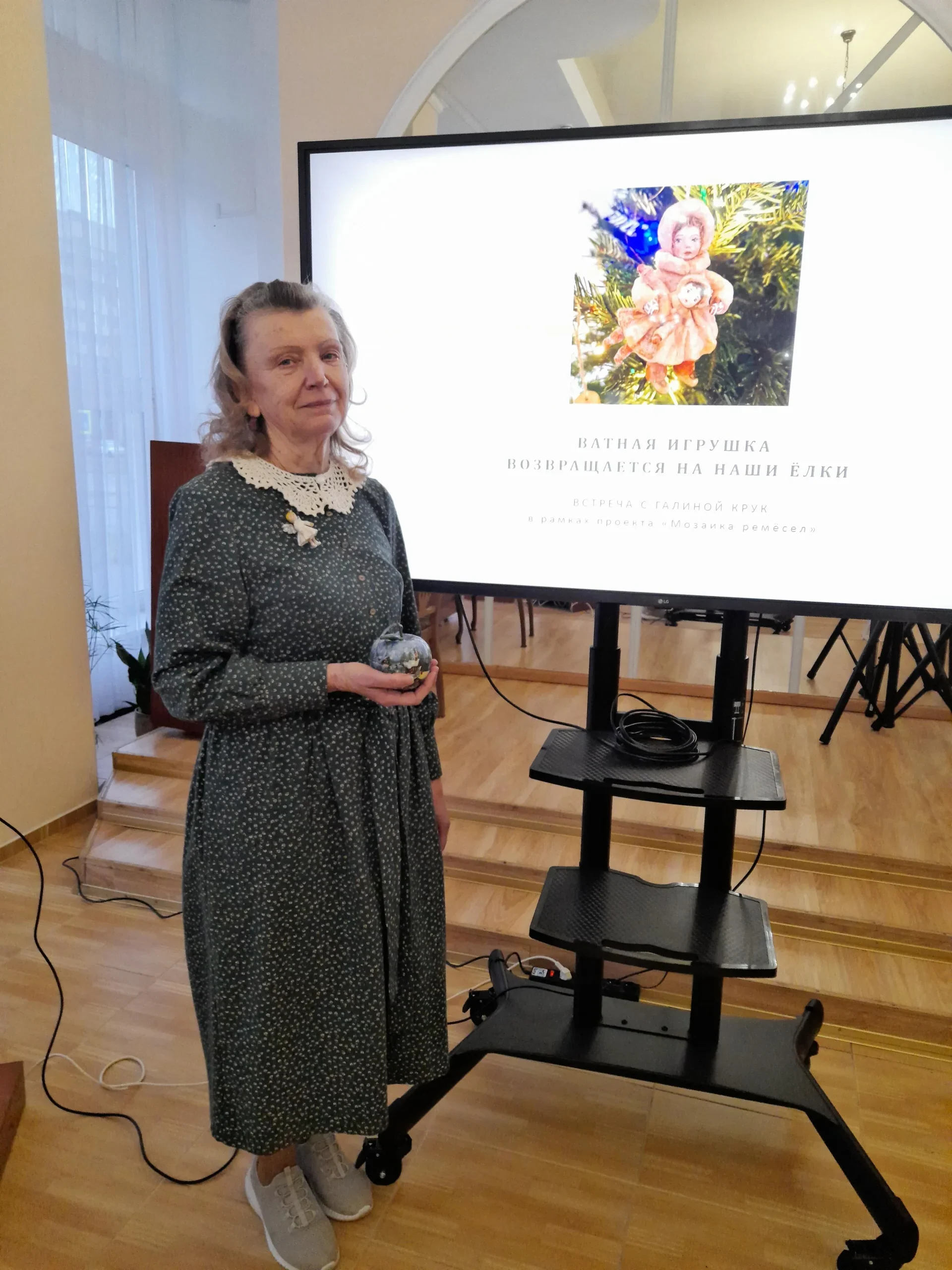 Очередная встреча в рамках проекта «Мозаика ремёсел» прошла в Центральной городской библиотеке им. А.С.Пушкина 3 декабря. В этот раз гостьей мероприятия стала ремесленник, мастер ёлочных игрушек из ваты Галина Крук.