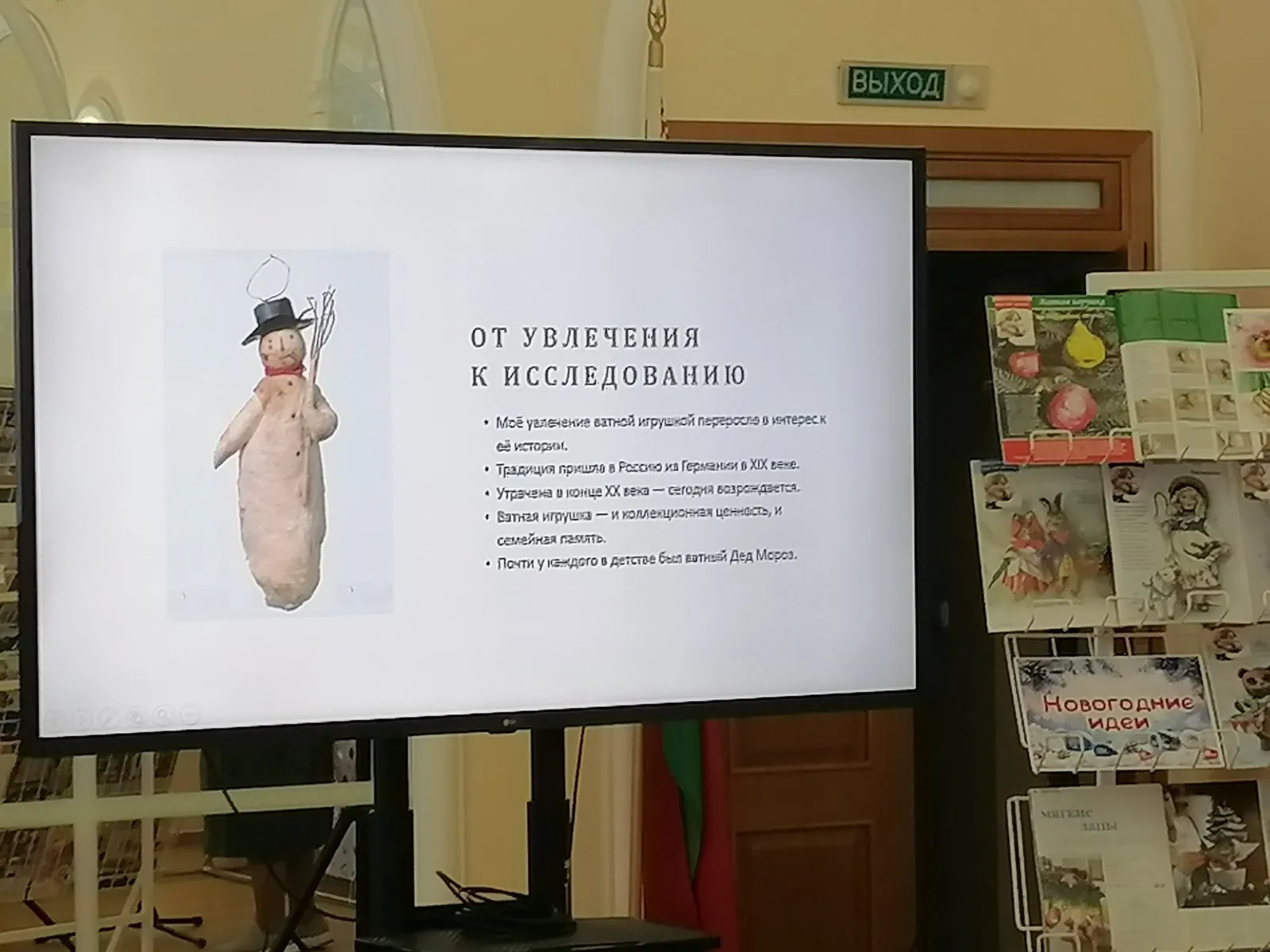 Мастер 6 лет занимается этим возрождающимся ремеслом, заряжая своим увлечением близких и родных, посетителей многочисленных выставок, а также покупателей. Галина Михайловна рассказала о инструментах и материалах, необходимых для создания ёлочной ватной игрушки. Провела мастер-класс, где на глазах взрослых и детей создавалась ватная игрушка.