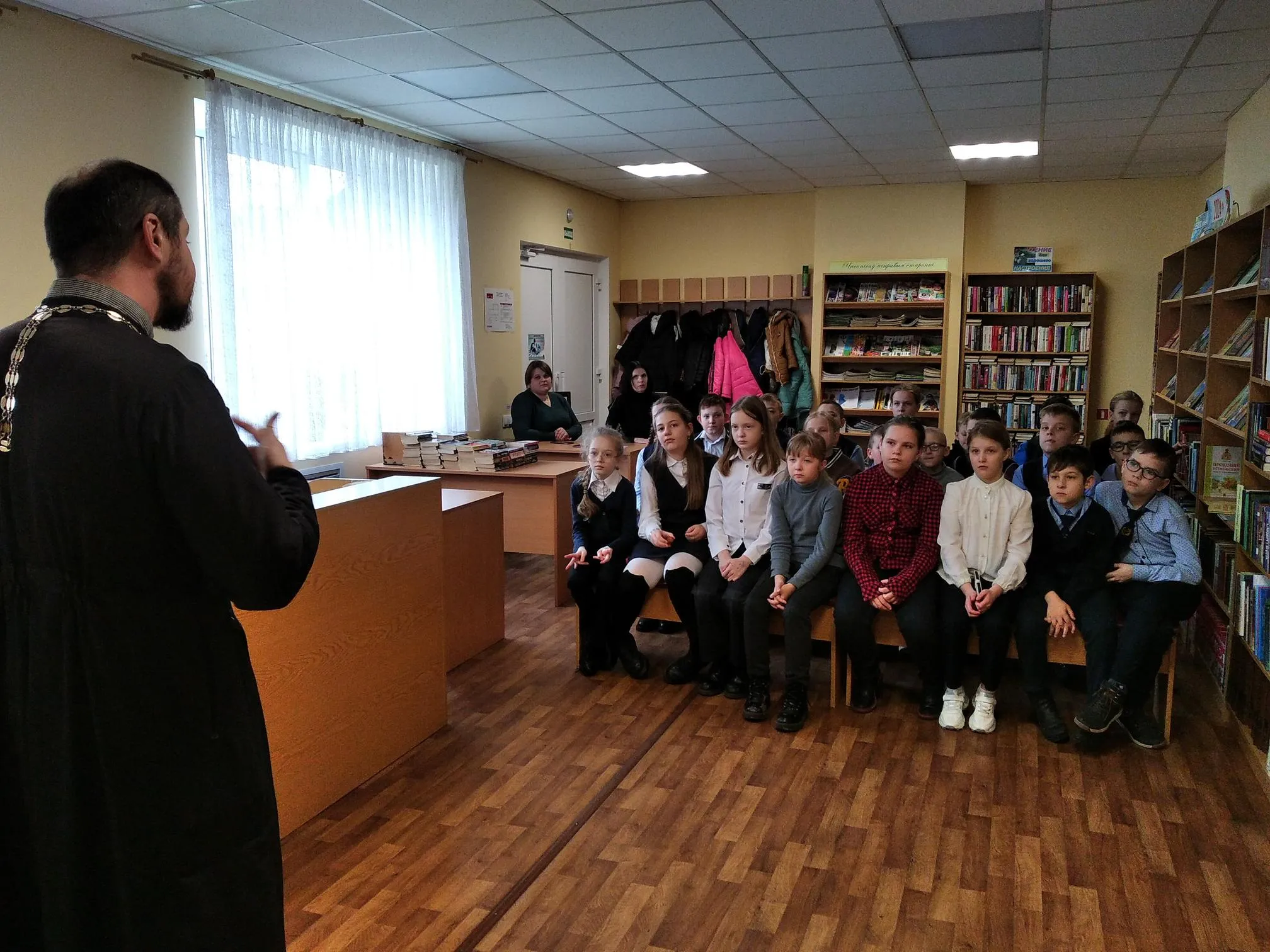 В середине марта библиотекари филиала № 2 провели мероприятие, на котором прикоснуться к духовной литературе, пообщаться со священнослужителем смогли учащиеся 4-го класса СШ № 33.