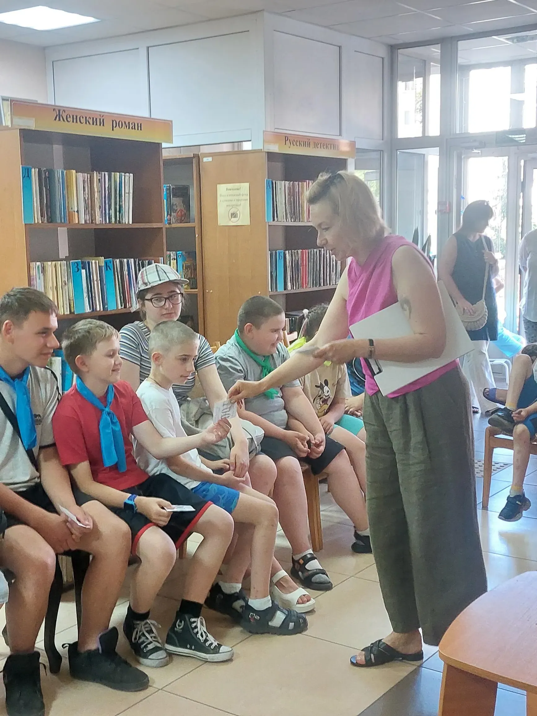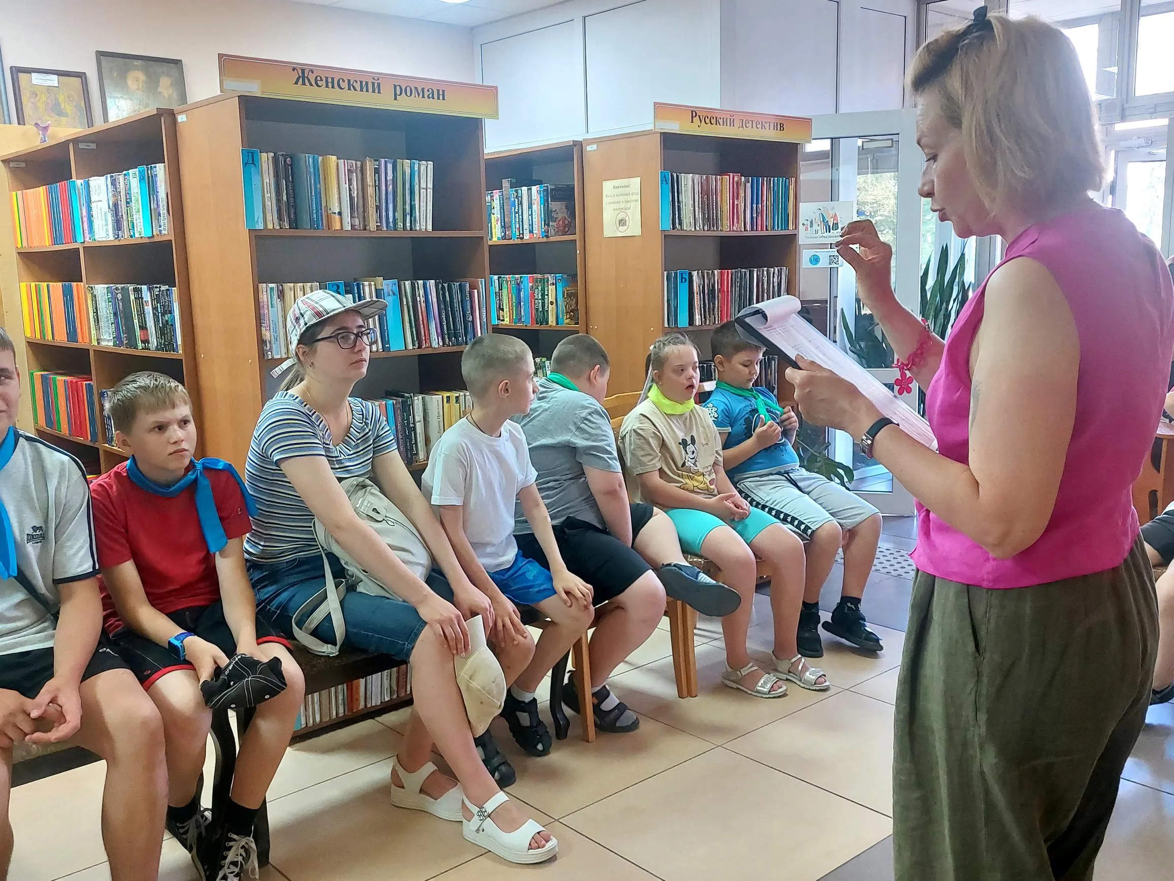 В середине июня в специальной библиотеке-филиале № 12 было шумно и весело. Ведь в гости пришли ребята школьного лагеря ГУО «Специальная школа № 1».