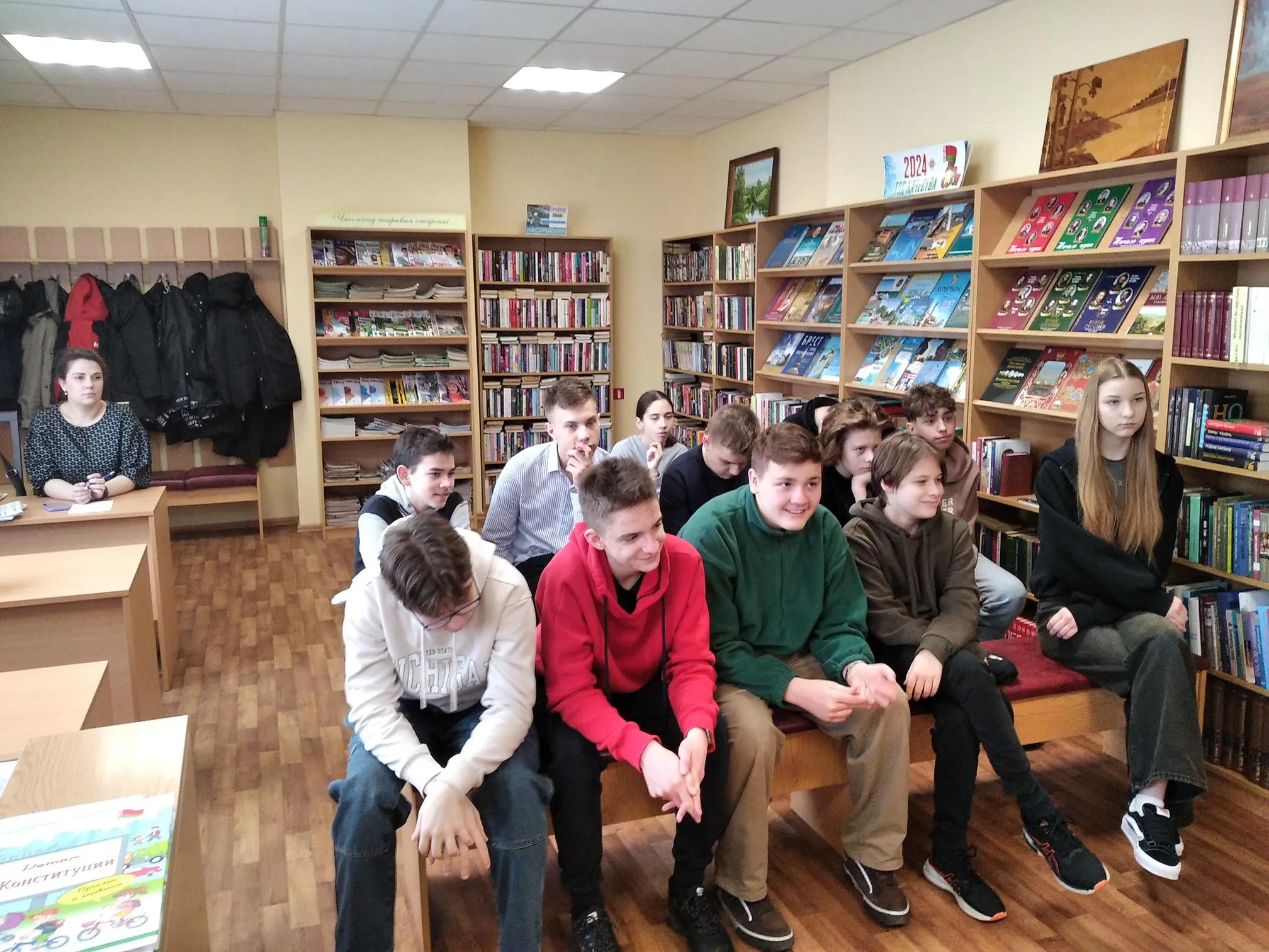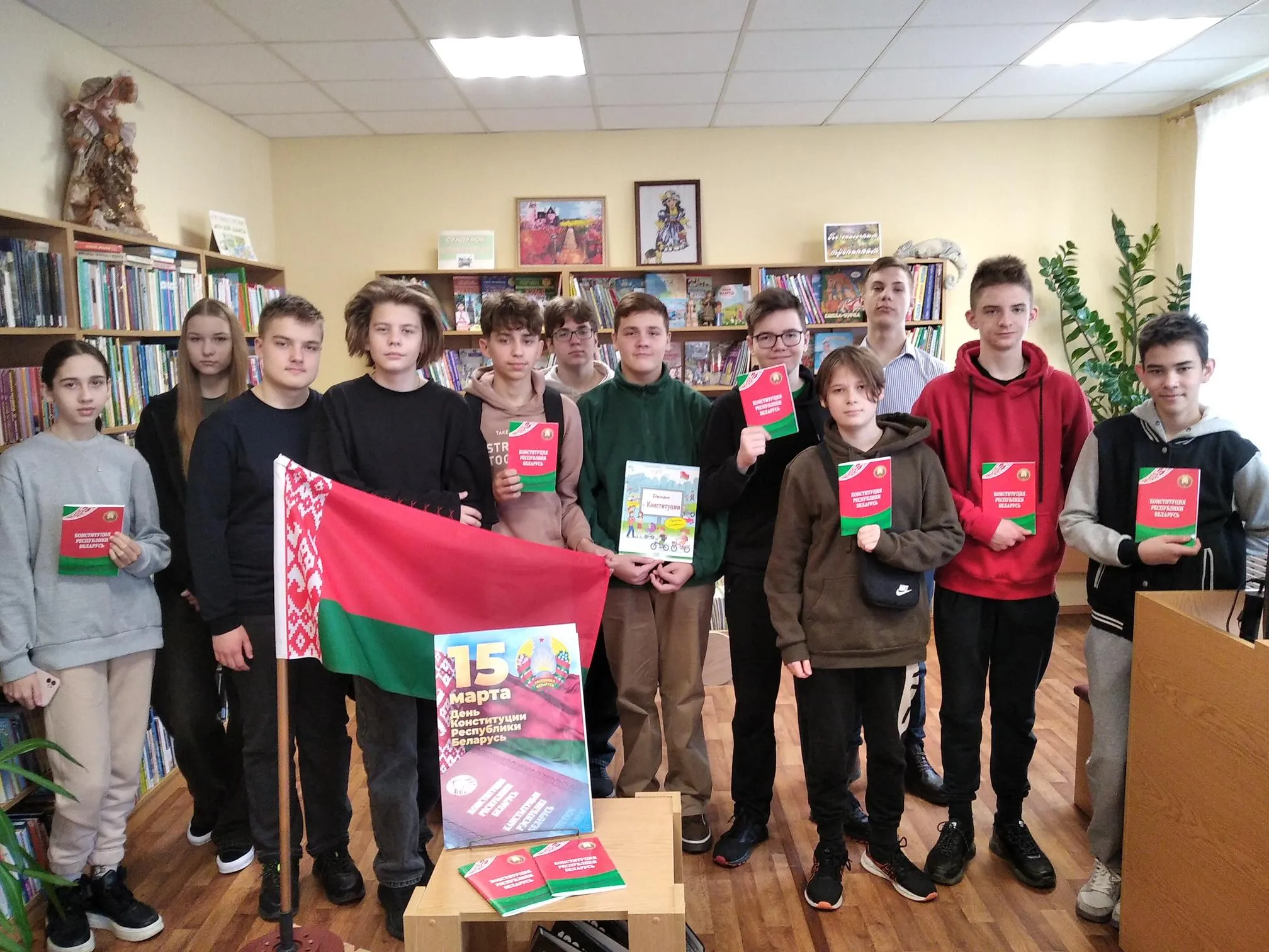 Мероприятие, посвящённое Дню Конституции Республики Беларусь, прошло для учащихся 8-х классов гимназии № 5 в библиотеке-филиале № 2. Ребята узнали, что Конституция Республики Беларусь является ядром правовой системы страны, а также закрепляет сложившиеся духовные традиции и ценности государства. Благодаря этому документу любой человек в нашей стране имеет право на достойную жизнь и личностное развитие.