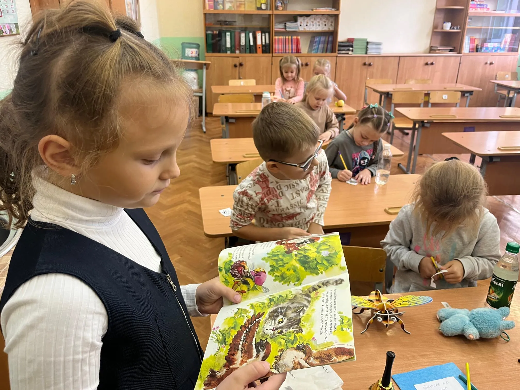 Ребята с удовольствием слушали сказку в стихах Татьяны Дашкевич «Про добрую пчелку», которую прочла библиотекарь. Вместе с Ириной Алексеевной ребята разобрали, какими замечательными качествами обладает пчела: добротой, трудолюбием, веселым нравом, мудростью. Дети наперебой отвечали на вопросы, демонстрируя, как они понимают важность этих качеств.