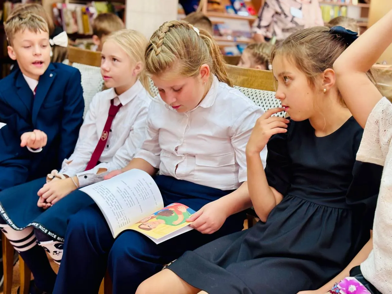 Особое настроение создало чтение отрывков из новых и любимых книг Зарецкой. Затаив дыхание, ребята слушали про путешествия птицы Воруни и медвежонка Тишки и его друзей, про приключения котенка Кексика и щенка Рэксика. Дети также интересовались, будет ли продолжение у ее книг, ведь герои произведений этой писательницы очень полюбились ребятам, и они даже предлагали свои варианты для следующих приключений.