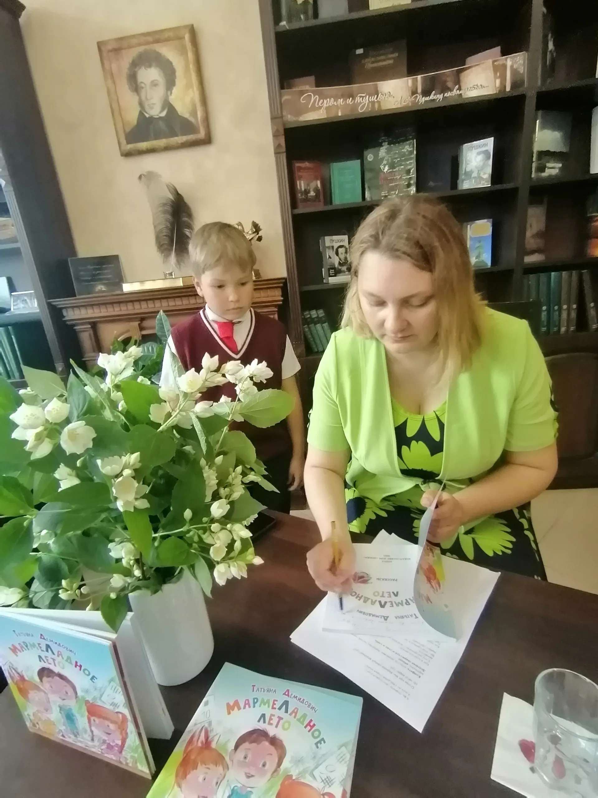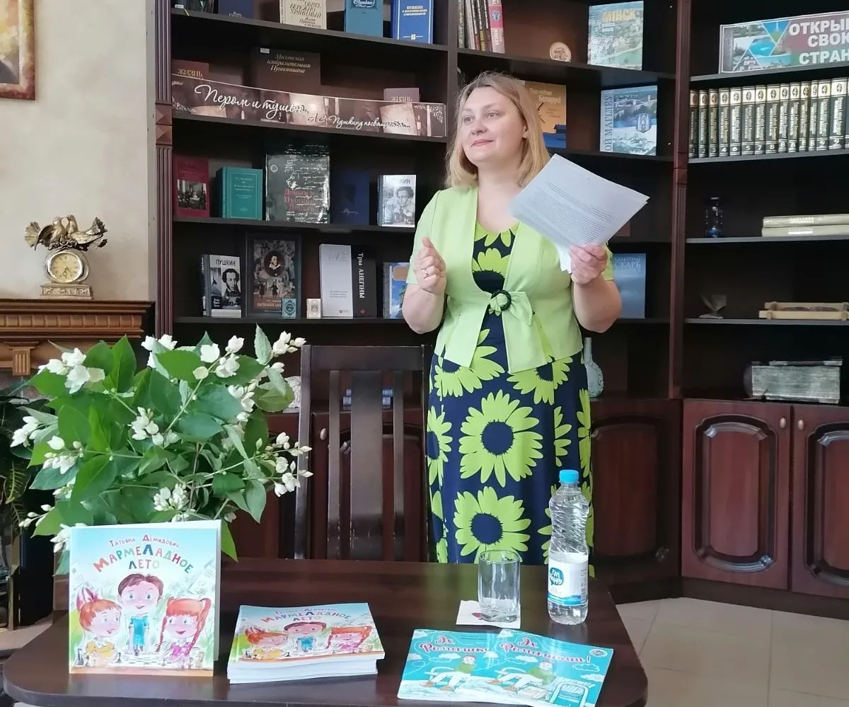 Ярко иллюстрированная книга «Мармеладное лето» вышла в свет в начале 2023 года. Она была напечатана при поддержке издательского дома «Звязда». Во время встречи Татьяна Анатольевна рассказала ребятам об истории создания своего сборника и о главных героях рассказов, которые вошли в книгу.