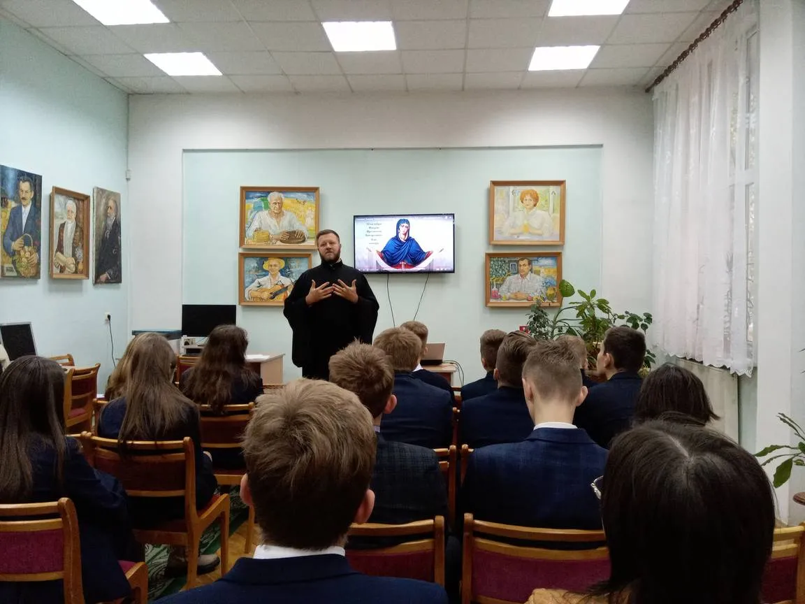 Недавно, 14 октября, наша страна праздновала День матери, а православные верующие отметили праздник Покрова Пресвятой Богородицы. Отец Константин рассказал об истории и значении этого праздника, его традициях. Школьники посмотрели видеоролик, подготовленный по инициативе церковнослужителей Свято-Воскресенского собора. Дальше шел разговор о роли семьи в жизни человека, о материнской любви, об обязанностях детей по отношению к матерям.