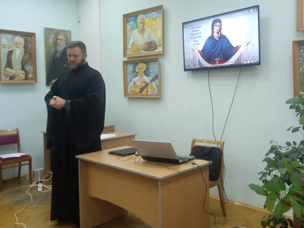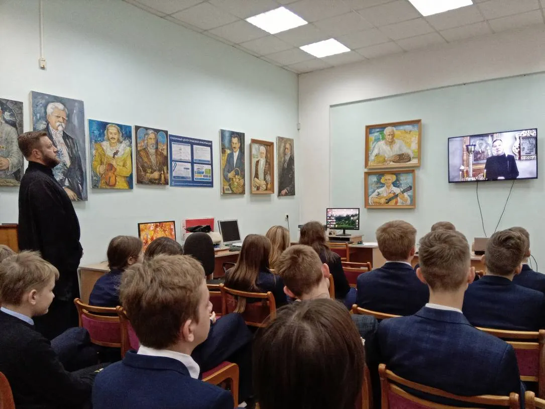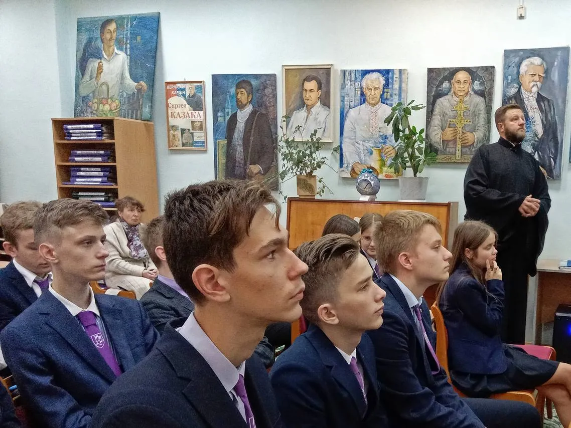 Встреча с отцом Константином, священнослужителем Свято-Воскресенского собора, прошла в октябре в библиотеке «Юность». Участниками беседы стали ученики гимназии № 2.