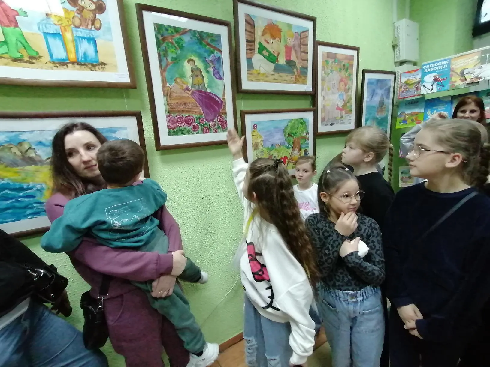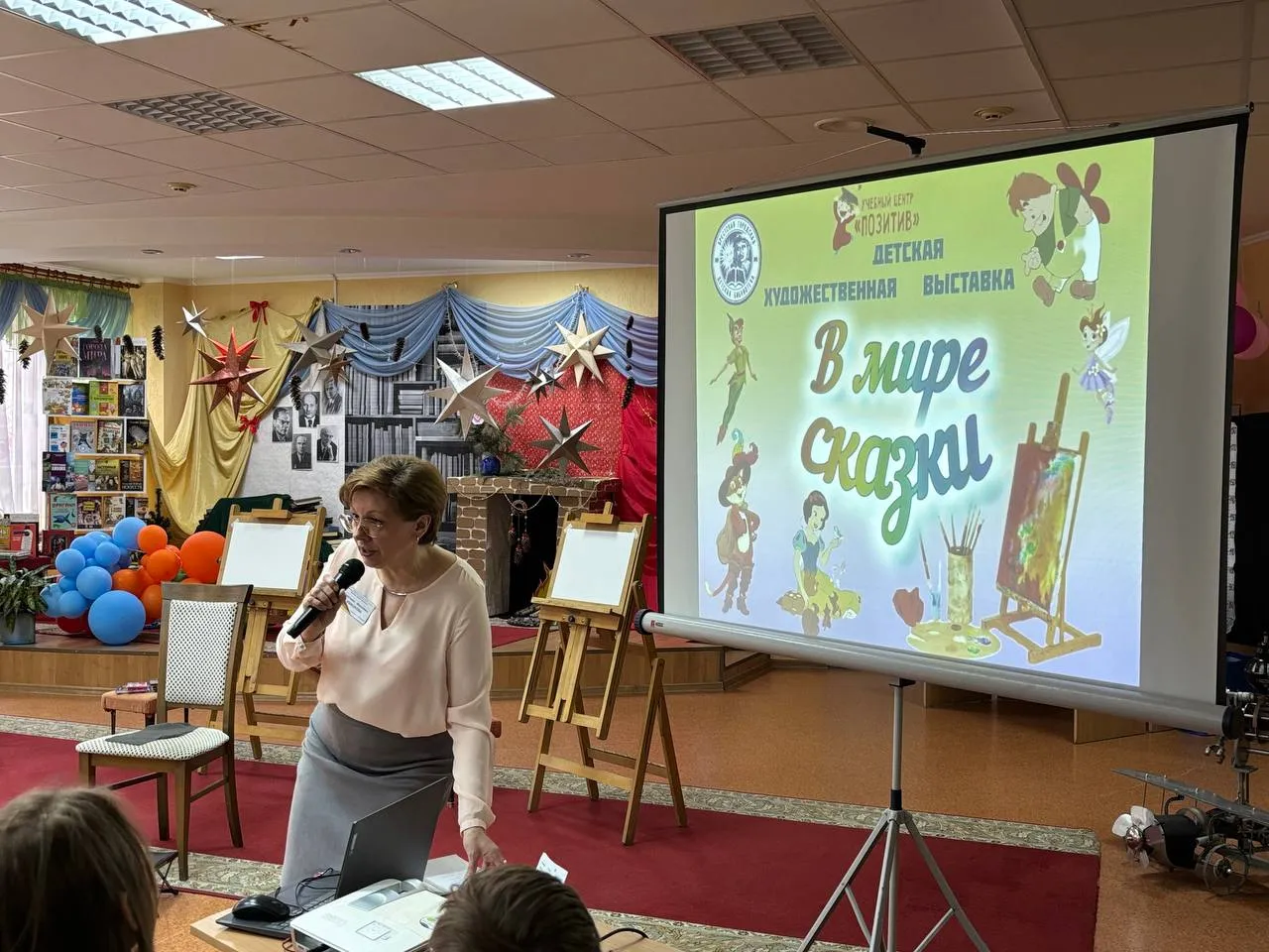 В этот день состоялось открытие литературно-художественной выставки «В мире сказки». В арт-галерее филиала было представлено более 30 картин по 26 детским художественным произведениям. Пастель, гуашь, карандаши. Яркие образы, красочные сюжеты. Каждый литературный герой узнаваем и соответствует текстам в книгах. Все эти работы выполнены детьми 9-14 лет, которые посещают художественную студию учебного центра «Позитив».